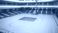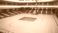 • Blurred background of the interior of a basketball court located inside a modern cruise ship with complete facilities around it, without any bright lights.