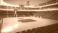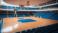 • Blurred background of the interior of a basketball court located inside a modern cruise ship with complete facilities around it, without any bright lights.