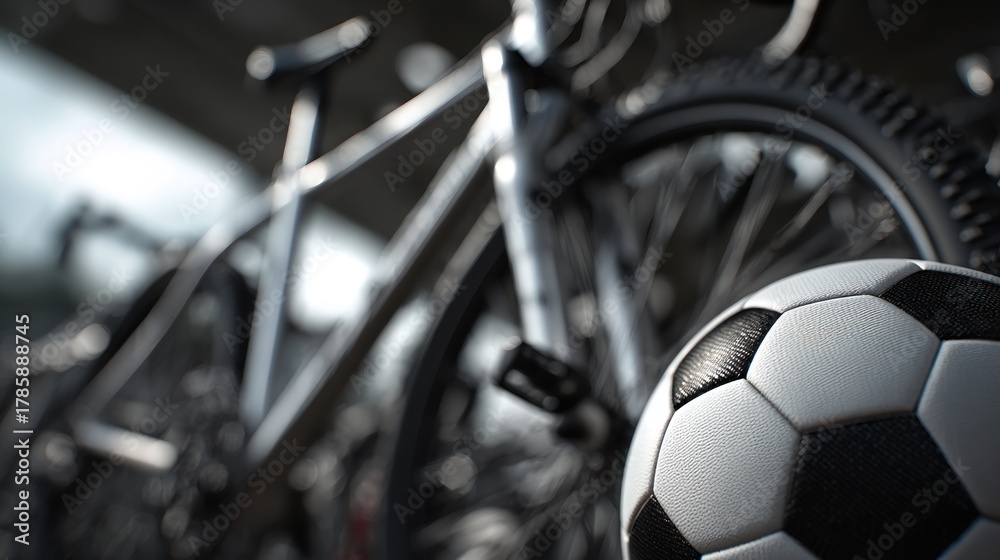 Naklejka do Pokoju Chłopca - Dynamic interplay of sports and recreation with bicycle and soccer ball #1785888745