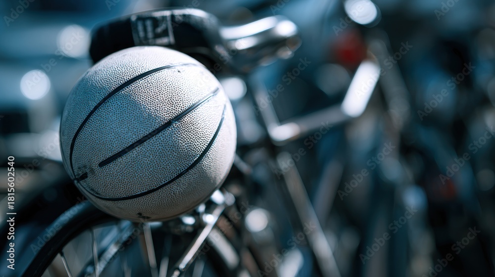 • Basket ball resting on bicycle, athletic recreation and sport lifestyle