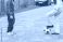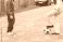 • Little girl and boy playing with ball on pavement outdoors, closeup. Children in danger