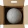 • Gray soccer ball centered inside an open cardboard box isolated on transparent background