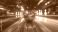 • A fast red bowling ball speeds toward pins in an urban club with motion blur and abstract city light trails creating a sense of night traffic and street transportation