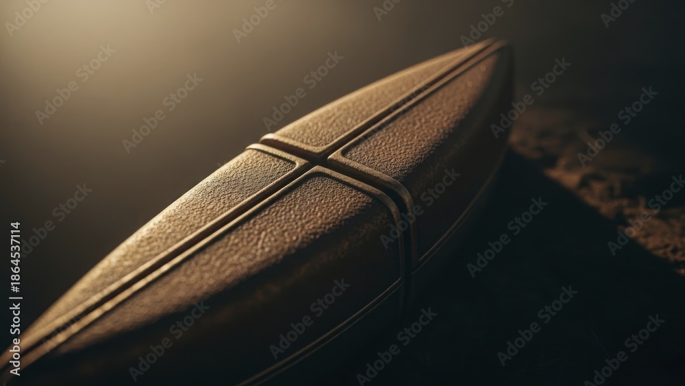 Naklejka do Pokoju Chłopca - Close up view captures the textured surface of an antique sporting implement under dramatic lighting #1864537114