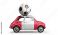 • Peru flag on car delivering soccer or football ball isolated on white background