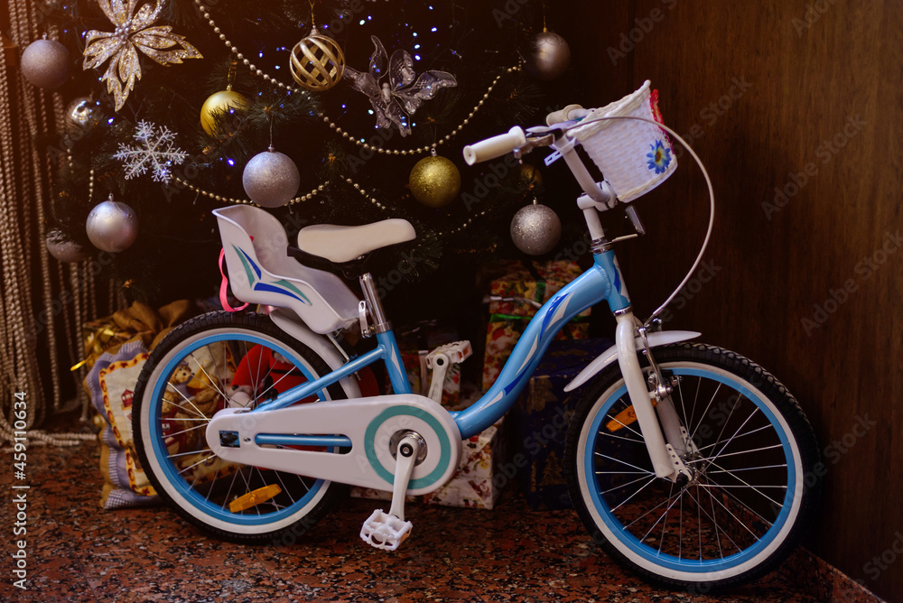 Naklejka do Pokoju Chłopca - Child bicycle as present under Christmas tree. #459110634