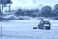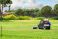 • Golf course and a vehicle collecting golf balls. Ballpicker on driving range of golf club