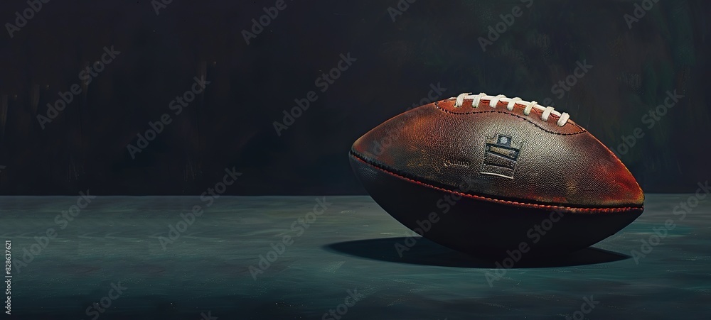 • An American football ball is photographed inside an empty room on a black background