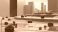 Naklejka do Pokoju Chłopca - Orange and blue buildings surround a body of water with floating balls #890710469