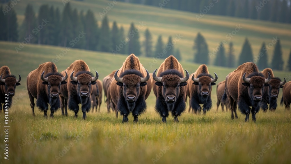 Naklejka do Pokoju Dziewczynki - Herd of bison in the meadow #1314655822