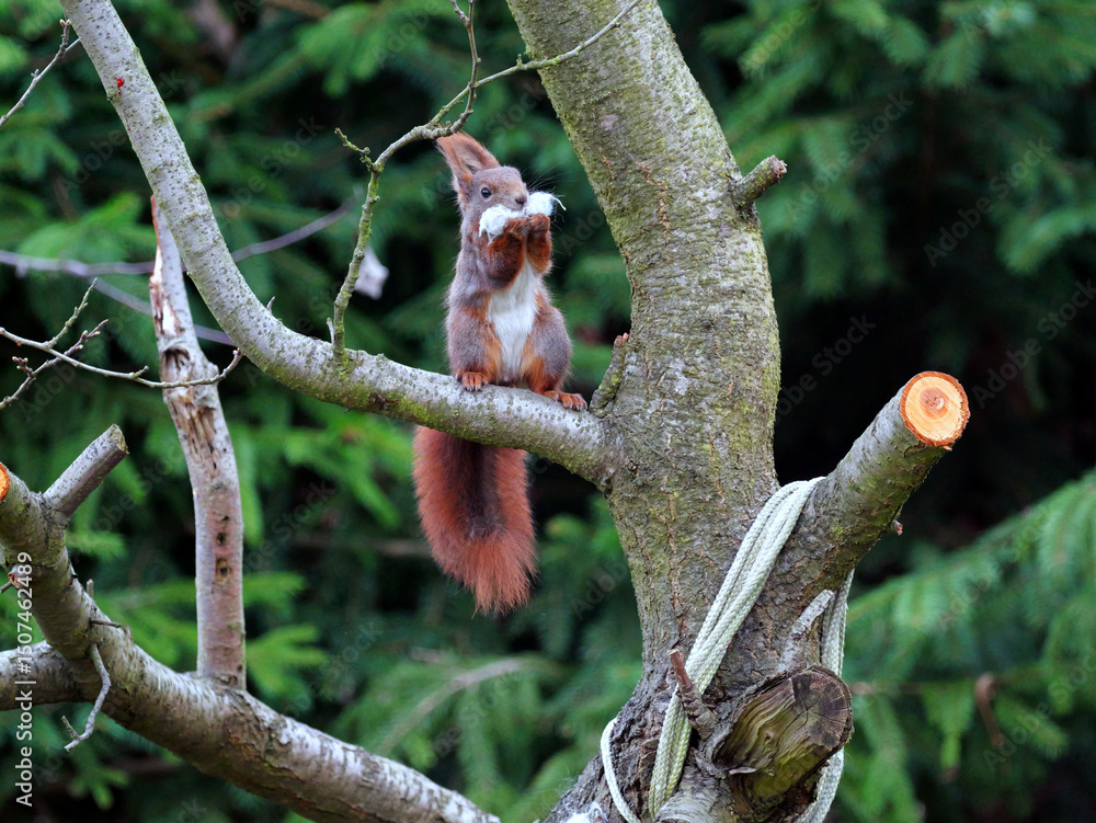 Naklejka do Pokoju Dziewczynki - Wiewiórka przegryza linę na placu zabaw i wyszarpuje z niej puch zbierając go na wyściółkę gniazda. #1507462489