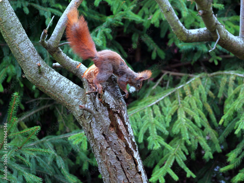 Naklejka do Pokoju Dziewczynki - Wiewiórka przegryza linę na placu zabaw i wyszarpuje z niej puch zbierając go na wyściółkę gniazda. #1507464346