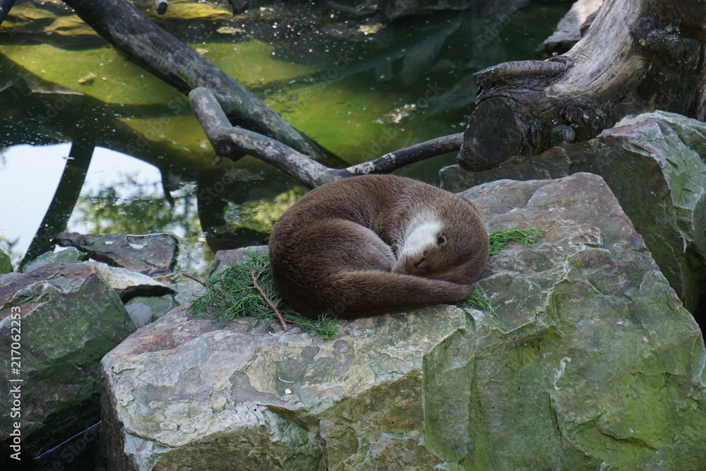 Naklejka do Pokoju Dziewczynki - Śpiąca Wydra na swoim wybiegu w warszawskim ZOO #217062253