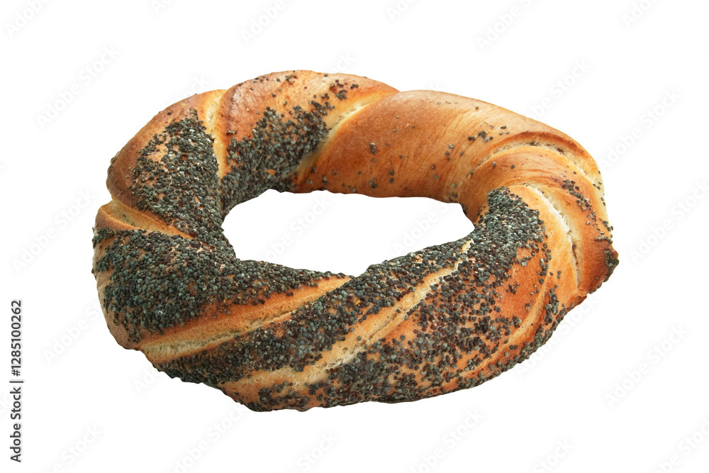 • Obwarzanek z makiem, precel na białym tle. Bez tła