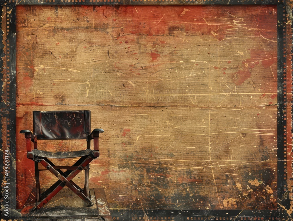 Naklejka do Salonu - Pojedynczy reżyserski fotel na tle tekstury vintage #1499270124