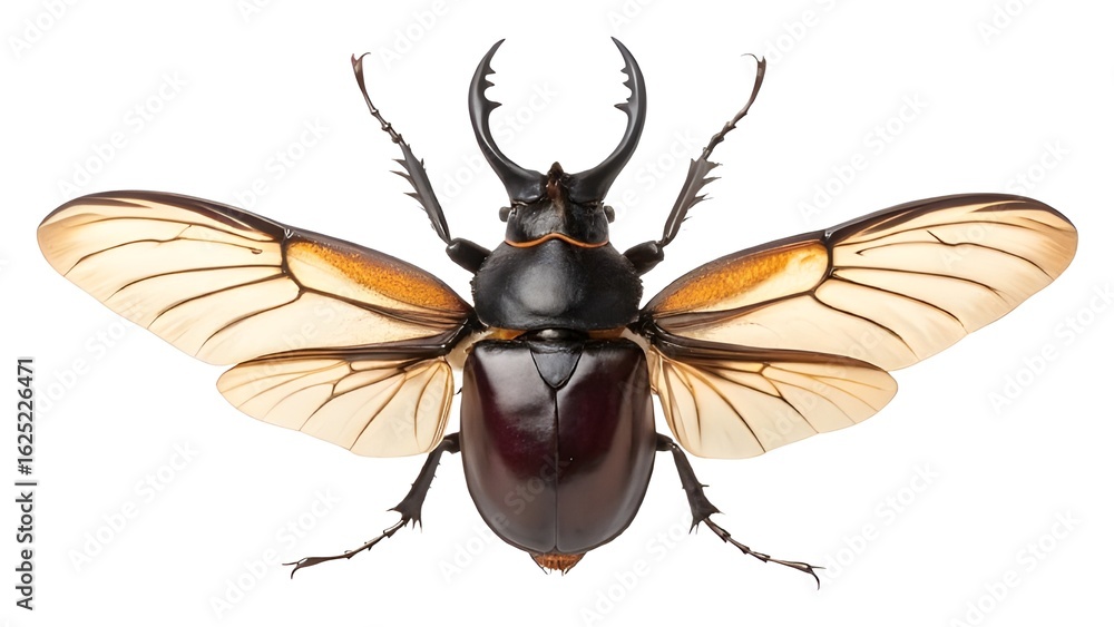 • Tlas beetle with spread wings detailed insect macro photography