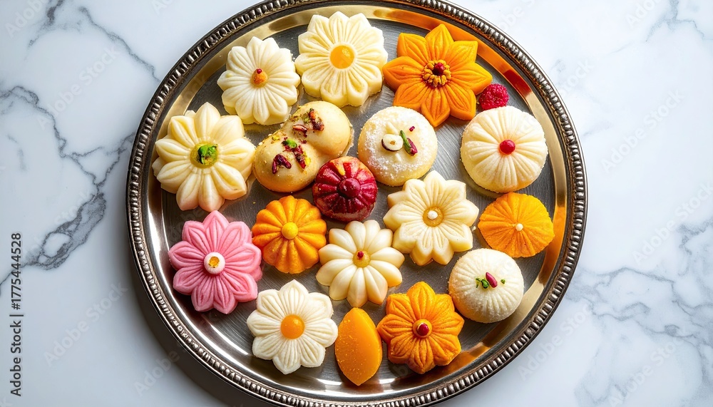 • Assortment of traditional Turkish s?tla? rice pudding baked in clay bowls with cinnamon on top presented on a marble surface a moody atmospheric shot