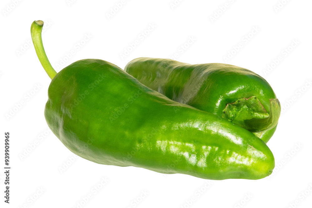 Naklejka do Salonu - Zielone papryczki bez tła, ostra papryka na białym tle #939909965