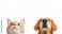 • Kot i pies, którzy patrzą w górę, na tle białego, neutralnego tła. Urocze i pełne życia wyrazy zwierząt tworzą atrakcyjny wizualnie element, który może być użyty do promowania treści lub produktów