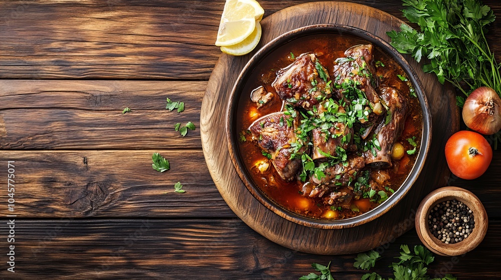 Naklejka do Sypialni - Osso Buco. The most popular Italian dishes. Braised veal shank served with gremolata, often with... #1045775071