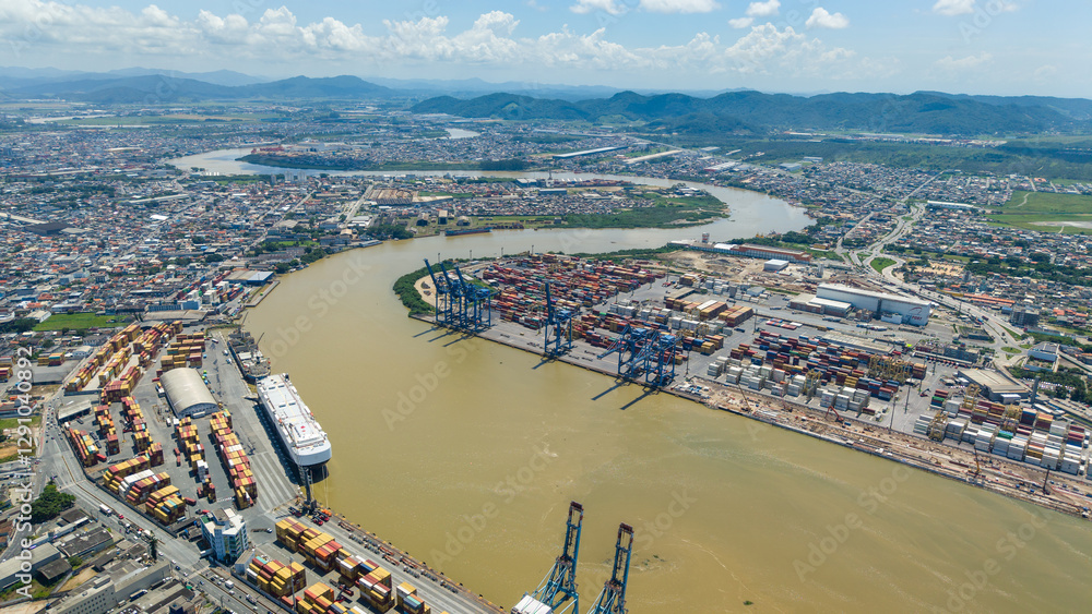 • Aerial photo of the Itajaí port in Santa Catarina, Brazil, one of the most important ports in South America.