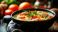 • A warm bowl of chicken noodle soup filled with fresh vegetables, inviting flavors, and comforting aromas, capturing the essence of homemade cooking at its most delightful.