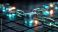 Naklejka do Sypialni - Luminous crystal cube connects glossy chains representing blockchain technology, secured... #1559850304