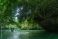 Naklejka do Sypialni - Wide shot of a boat crossing in the river of Green Canyon in Pangandaran, West Java, Indonesia.... #1570695250