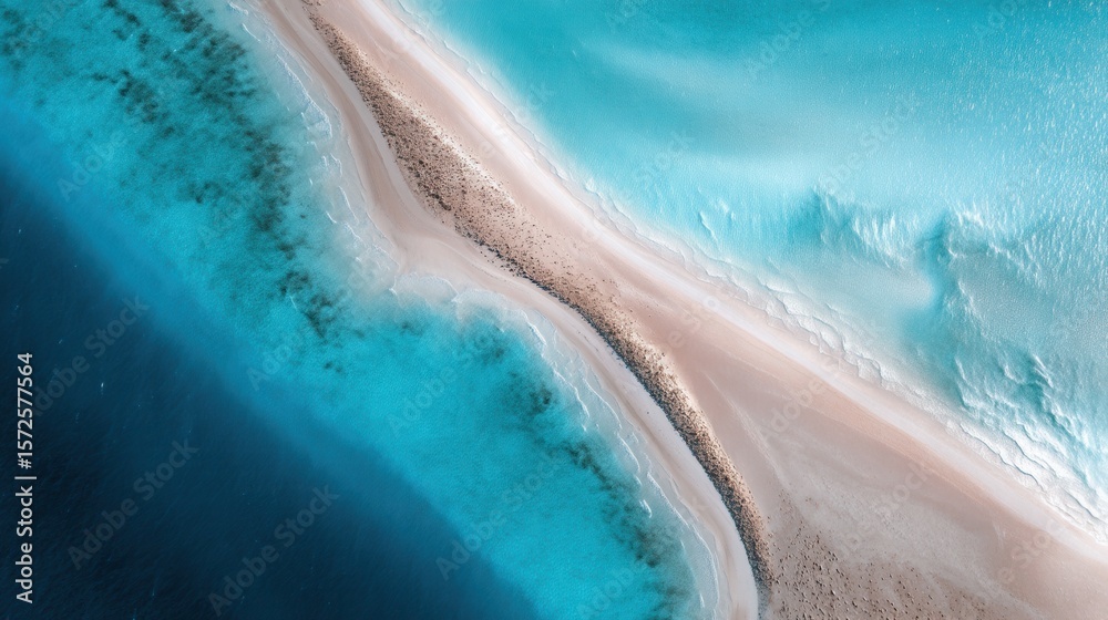 Naklejka do Sypialni - Aerial view captures the serene beauty of a sandbar meeting the turquoise sea, with waves gently... #1572577564