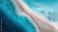• Aerial view captures the serene beauty of a sandbar meeting the turquoise sea, with waves gently lapping the sandy shore.