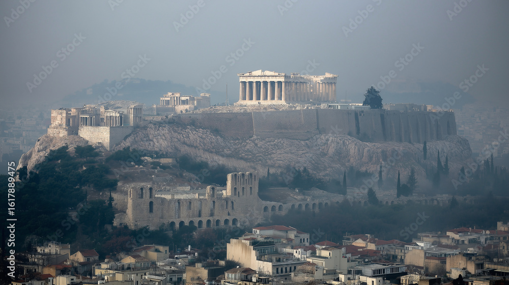 Naklejka do Sypialni - Smog blankets Athens, one of the most polluted cities in the European Union. #1617889475
