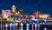 • Des Moines, Iowa skyline by night with reflections in Des Moines river. Des Moines is the capital and most populous city in the U.S. state of Iowa and seat of Polk County