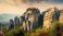 • mysterious monasteries hanging over rocks of meteora greece most famous landmarks and beautiful places generative ai