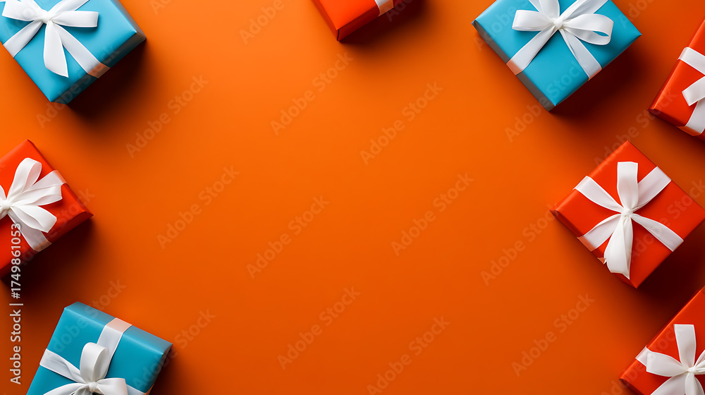 Naklejka do Sypialni - Festive gifts are arranged around the orange scene. The perfect presents for the most fantastic... #1749861053