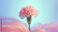 • Pink flower is in the foreground of a blue background. The flower is the main focus of the image, and it is the most important element. The blue background creates a calm and serene atmosphere