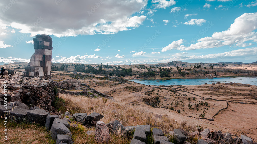 • The Chullpas of Sillustani are impressive circular stone funerary towers located on the shores of Lake Umayo, near Puno, Peru. This archaeological site is one of the most important cemeteries in the w