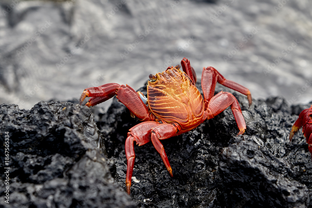 vibrant Sally Lightfoot crab (Grapsus grapsus), one of the most iconic and photogenic species on Isabela Island and throughout the Galápagos. Known for their brilliant red and orange shells that contr od 0,00 zł Dopasuj i kup Obraz