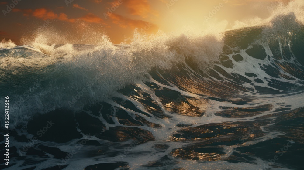 • Experience the breathtaking power and golden glow of an ocean wave at its most magnificent.