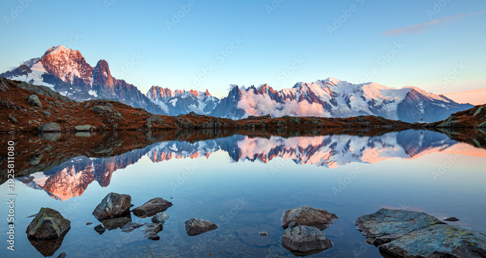 Naklejka do Sypialni - Mont Blanc, the highest peak in the Alps, rises elegantly above the alpine landscape near... #1925811080