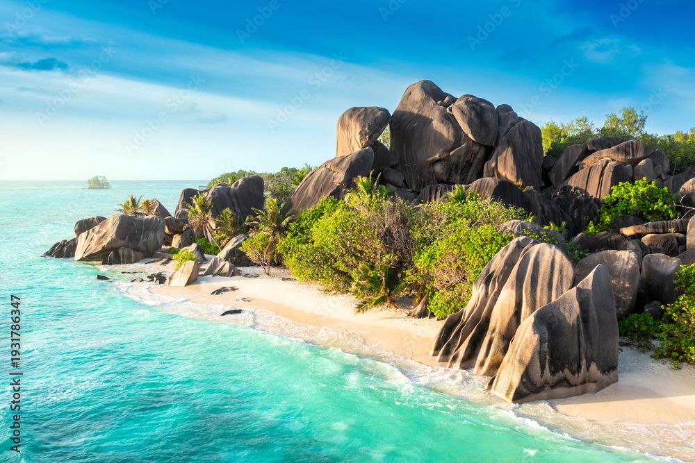 Naklejka do Sypialni - The most beautiful beach of Seychelles. Anse Source D'Argent, La Digue Island, Seychelles #1931786347