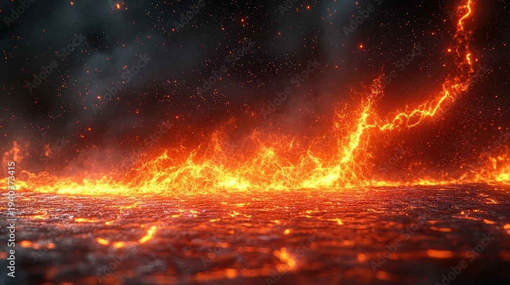 Naklejka do Sypialni - Fiery Inferno: A close-up perspective of molten lava creates a mesmerizing scene of destruction... #1940373415