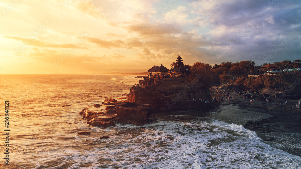 • Tanah Lot in sunrise colors,the most famous temple at Bali island,Indonesia