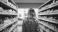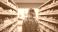 Naklejka do Sypialni - A woman with long blonde hair walks down a pharmacy aisle. The shelves are filled with bottles of... #966239855