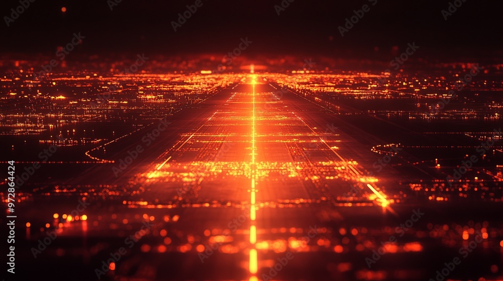 • Heatmap of an airport runway, with intense reds and oranges marking the most heavily trafficked areas and cooler tones in less used sections. 4K hyperrealistic photo.