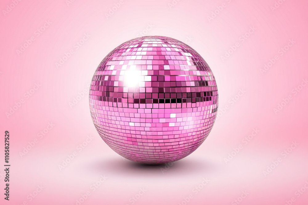 • A vibrant pink disco ball reflecting colorful lights in a playful setting. isolated on white background.