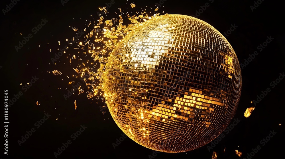 Naklejka do Szkoły Tańca - Golden disco ball exploding on black background #1180974045