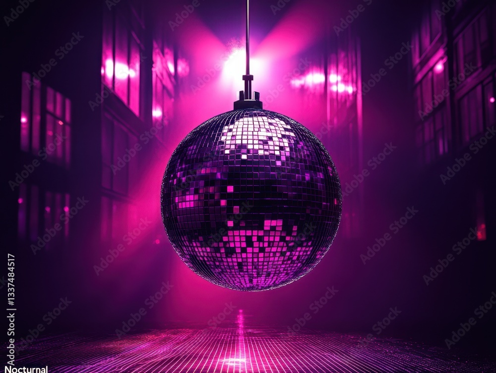 Naklejka do Szkoły Tańca - Hanging disco ball in neon pink hallway #1337484517