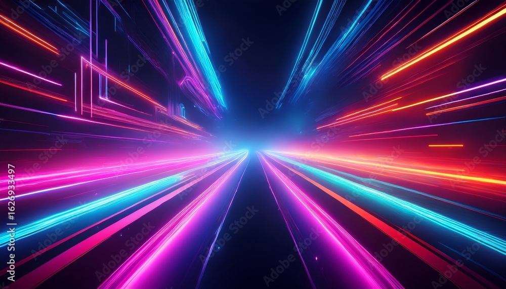 Naklejka do Szkoły Tańca - futuristic neon light streaks with smoky background #1626933497