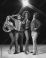 • Retro group in disco outfits posing under spotlight with glam energy. Concept of vintage fashion, pop culture nostalgia, bold advertising, and lifestyle celebration.
