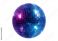 • Isolated disco ball with colorful mirror tiles reflecting light during a party or dance
